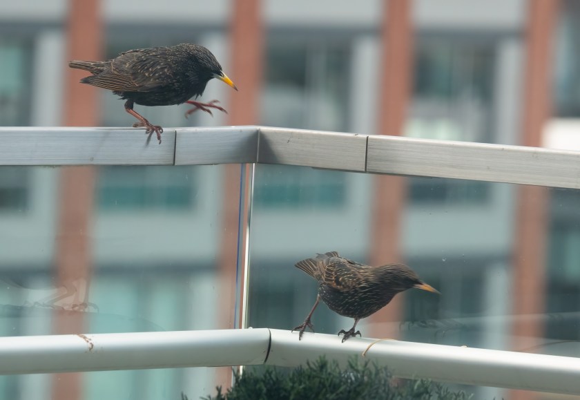 These photos were all taken on the eighth floor balcony of a modern high-rise in the middle of the city. Starlings are adaptable!