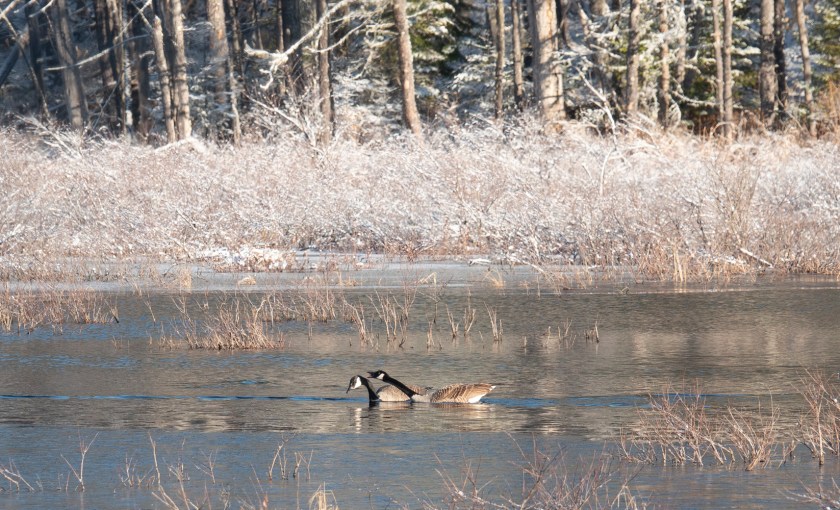 Most of the winter, if I see otters together I assume they are a mother and last year’s young. They behave like puppies, rolling around, diving in, and playing, often fishing out of the same hole in the ice.