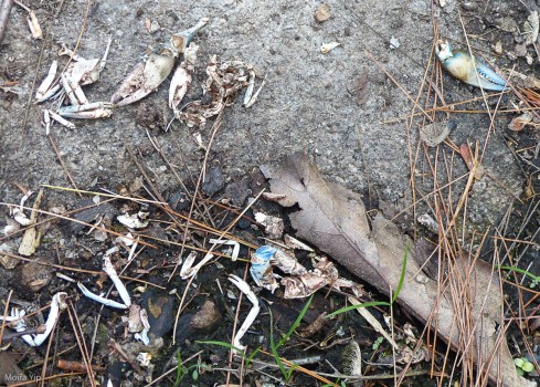 Previous Image Next Image Otter midden, with crayfish debris, on edge of drained pond Otter midden, with crayfish debris, on edge of drained pond