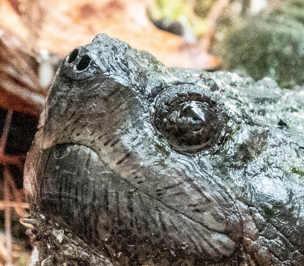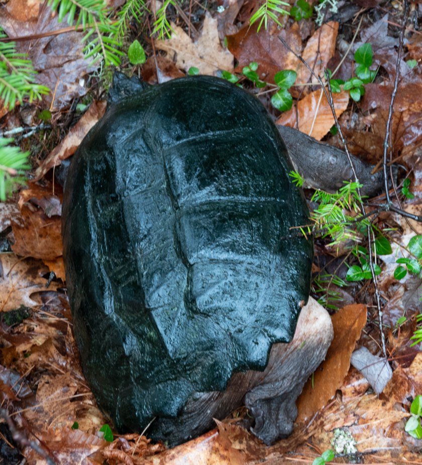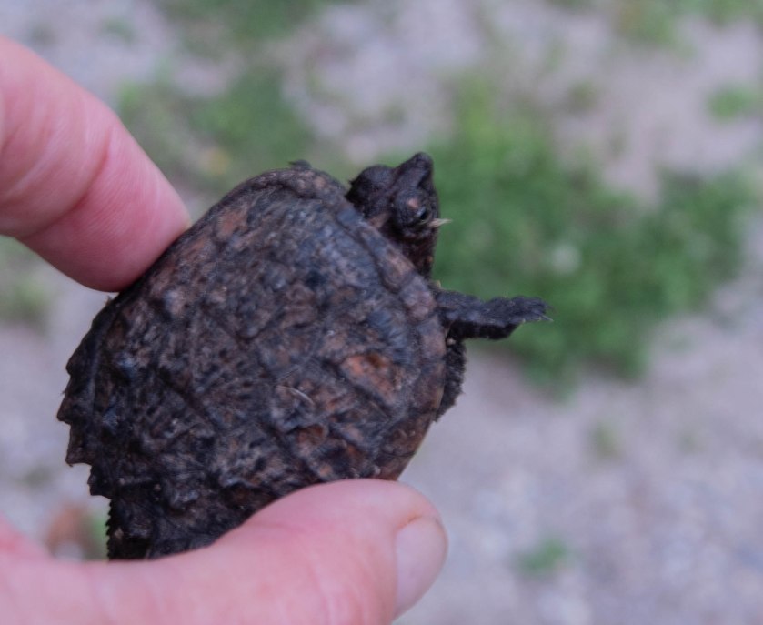 (This post was unfindable after I read it, once). Turtle on the bank does not look like a snapper. Have helped several large snappers get across the street, once on a discarded real-estate sign. Last summer, in a meadow behind our house, a large snapper was returning to the water, most likely after laying eggs, she seemed very tired. My grand daughter and her Mom & I watched, from a safe distance…she got a very good video…they walk like dinosaurs.