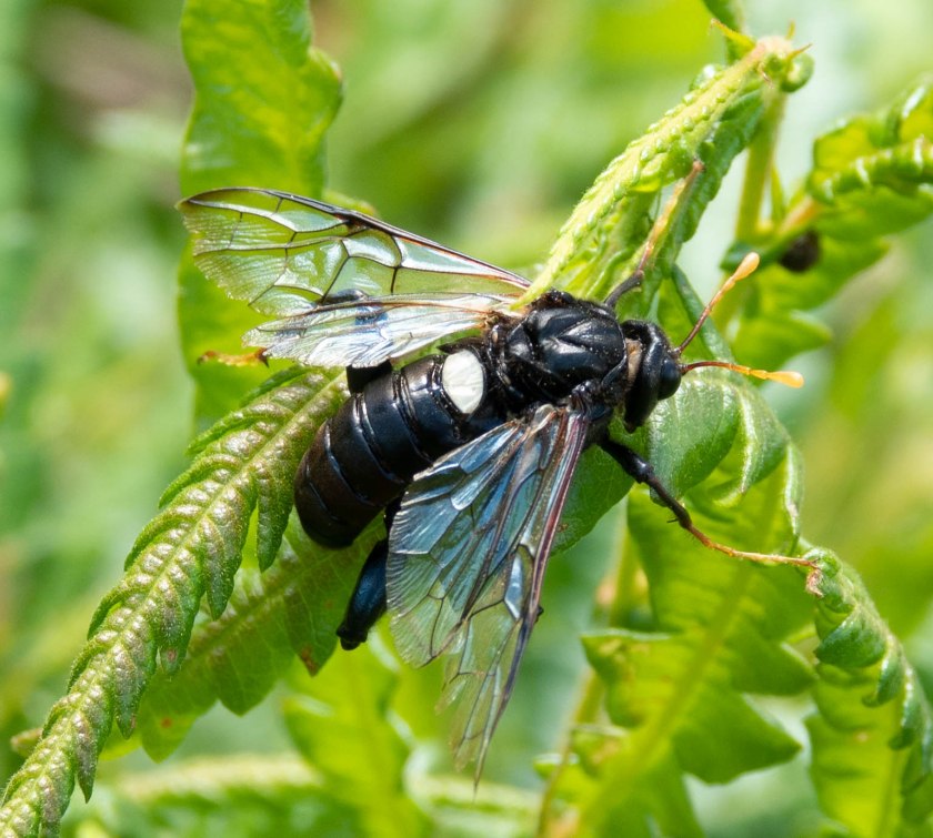 The dark one looks a little menacing, with that white dot, but the iridescent wings are very pretty. You take such great photos.