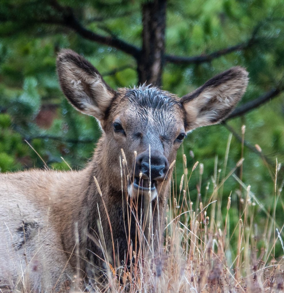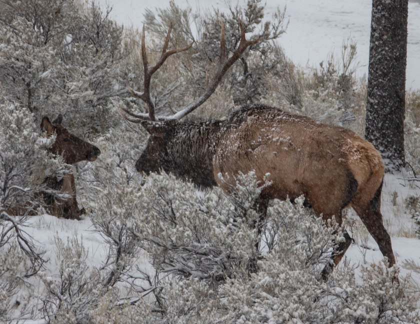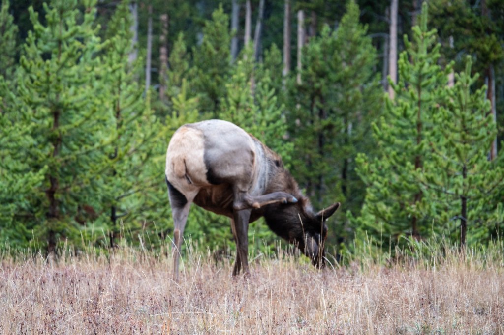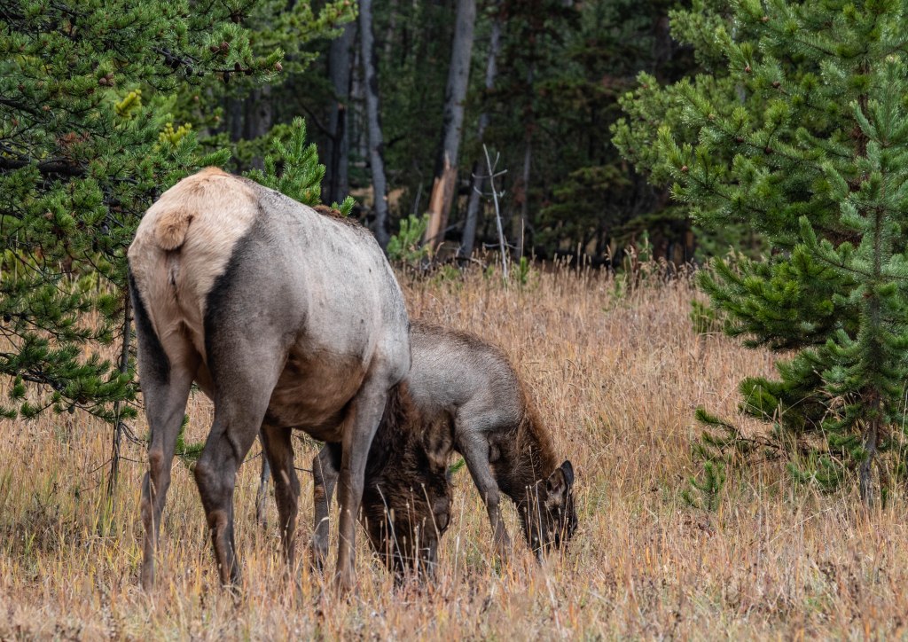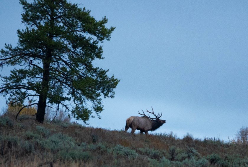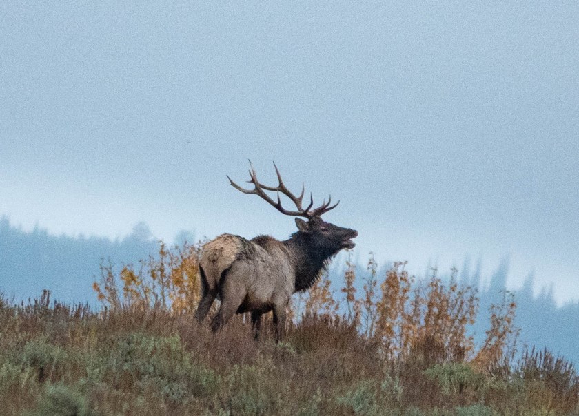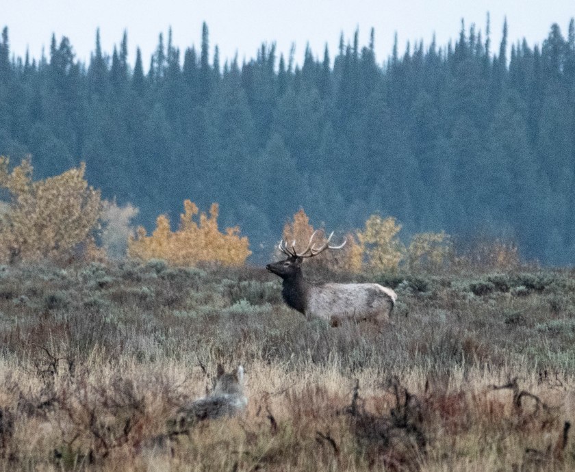 The watcher is certainly a canid, (confirmed by my guide), and probably a wolf, (though it could be a coyote). Since I never did see wolves I am going to claim this as a wolf-sighting! Elk is the preferred food of wolves in the Tetons, and they can tackle both calves, and older or weaker adults.