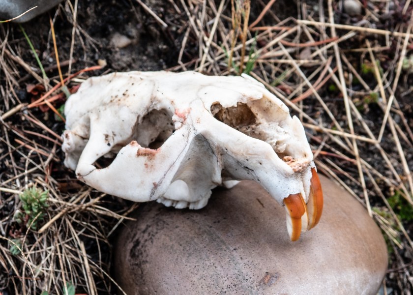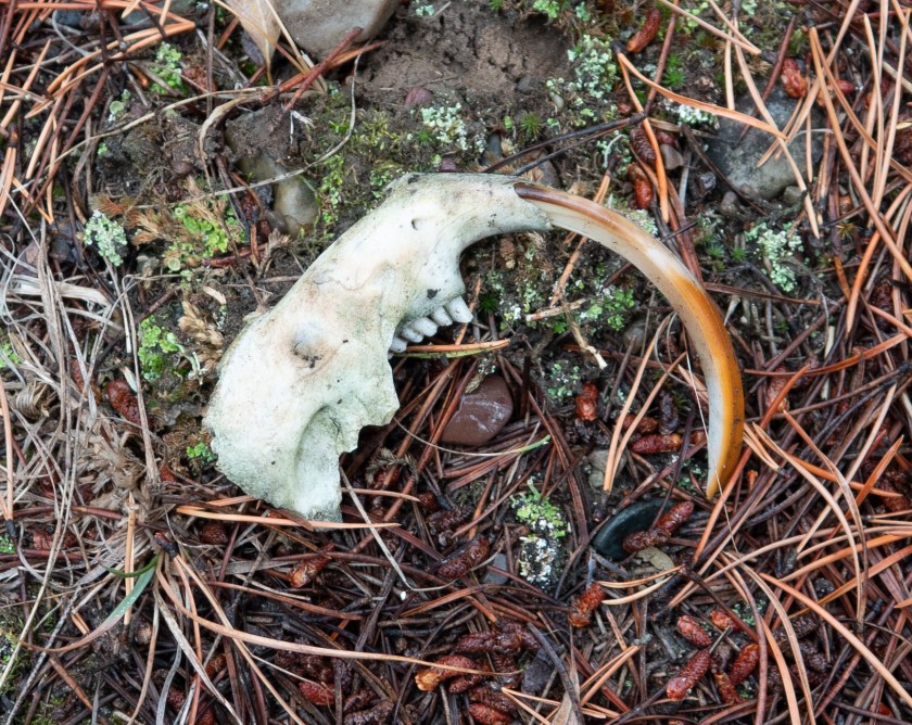 The beaver may have just died, but if so I suspect a predator moved the carcass. It was all a long way from any water, and the skull and saw were maybe 50 yards apart. The scat was quite fresh, coyote probably, but the bones weren’t, so I think it is unrelated.