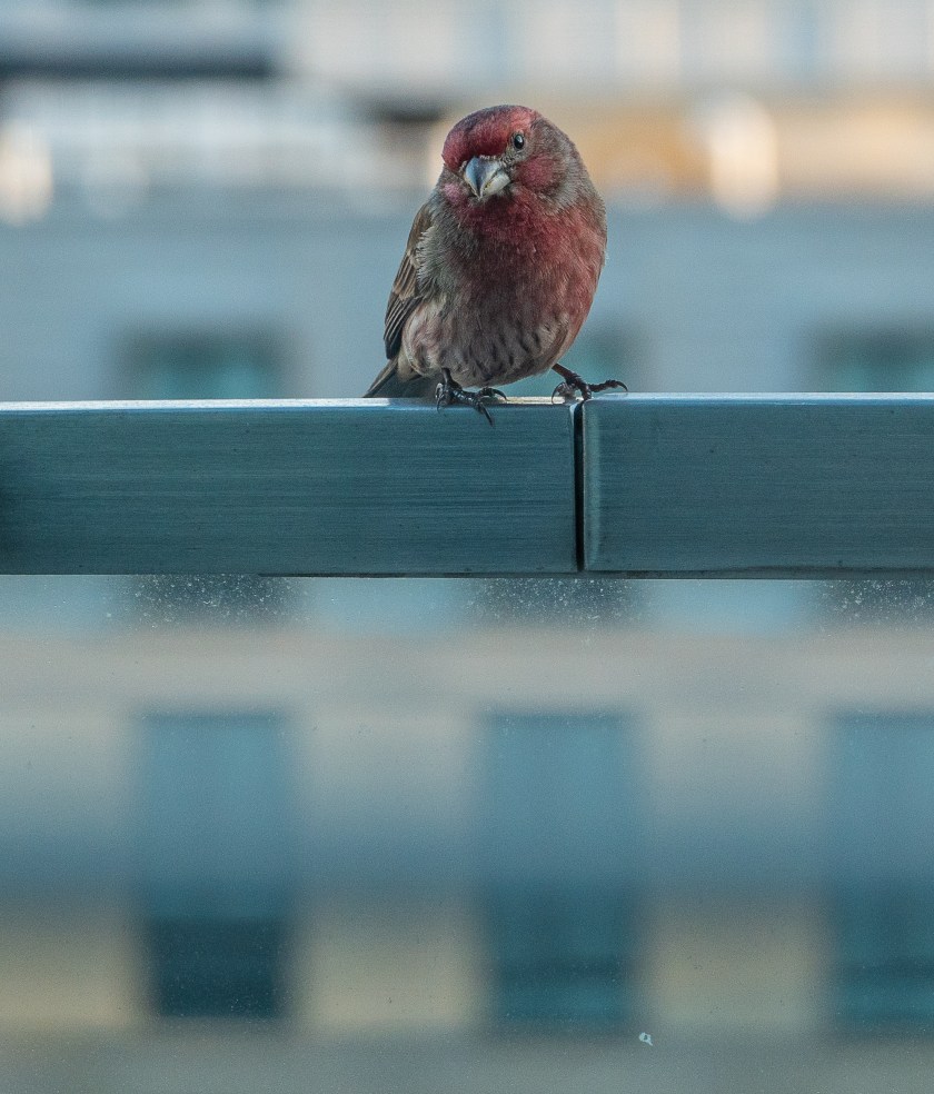 The House Finches have a quite different habitat. They are almost exclusively found in settled areas, and often nest in high-rise buildings. Mine hang out on the eighth floor of my downtown Boston high-rise condo building; I am watching for a nest in the coming months.