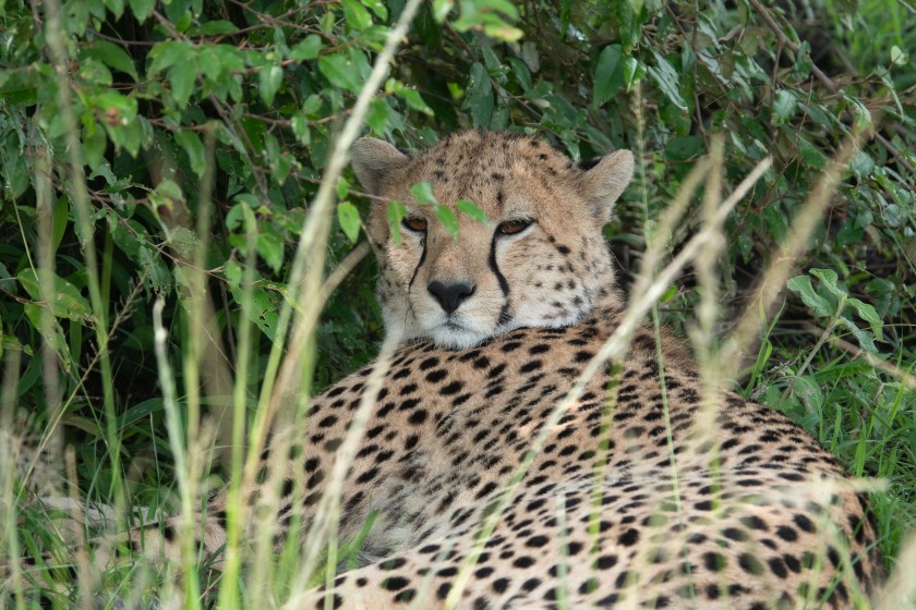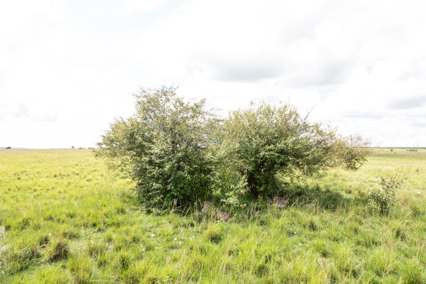 Fairly near the cheetah mother and cubs that I showed you before, there were three other young three-year old cheetah siblings (one male, two female) that had been thrown out by their mother a month ago, and were learning to manage on their own. My guide somehow found them asleep under a tree one morning (don’t worry, I couldn’t see them either):
