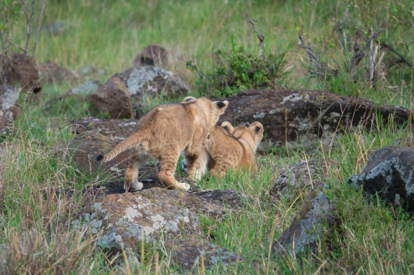 It is all play, but it is also good practice for hunting, as is hiding in the long grass (look at the top left of the photo below)