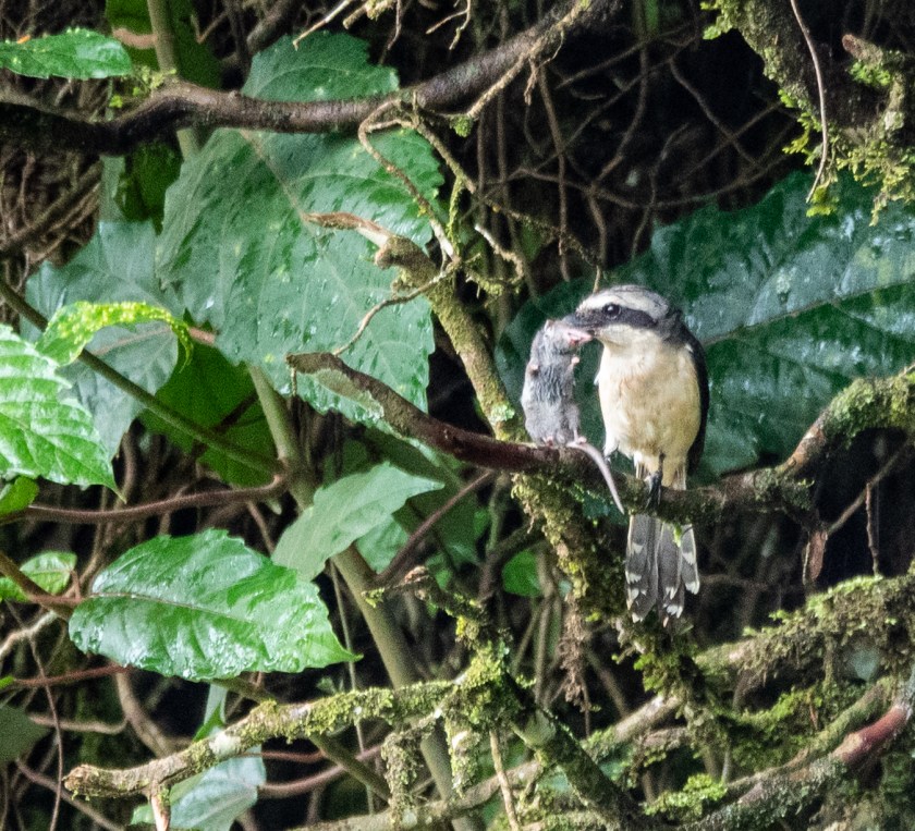 A field mouse is a very tiny thing, easily caught by any number of altogether larger creatures. This one was caught by a Mackinnon’s Fiscal Shrike in Kenya:
