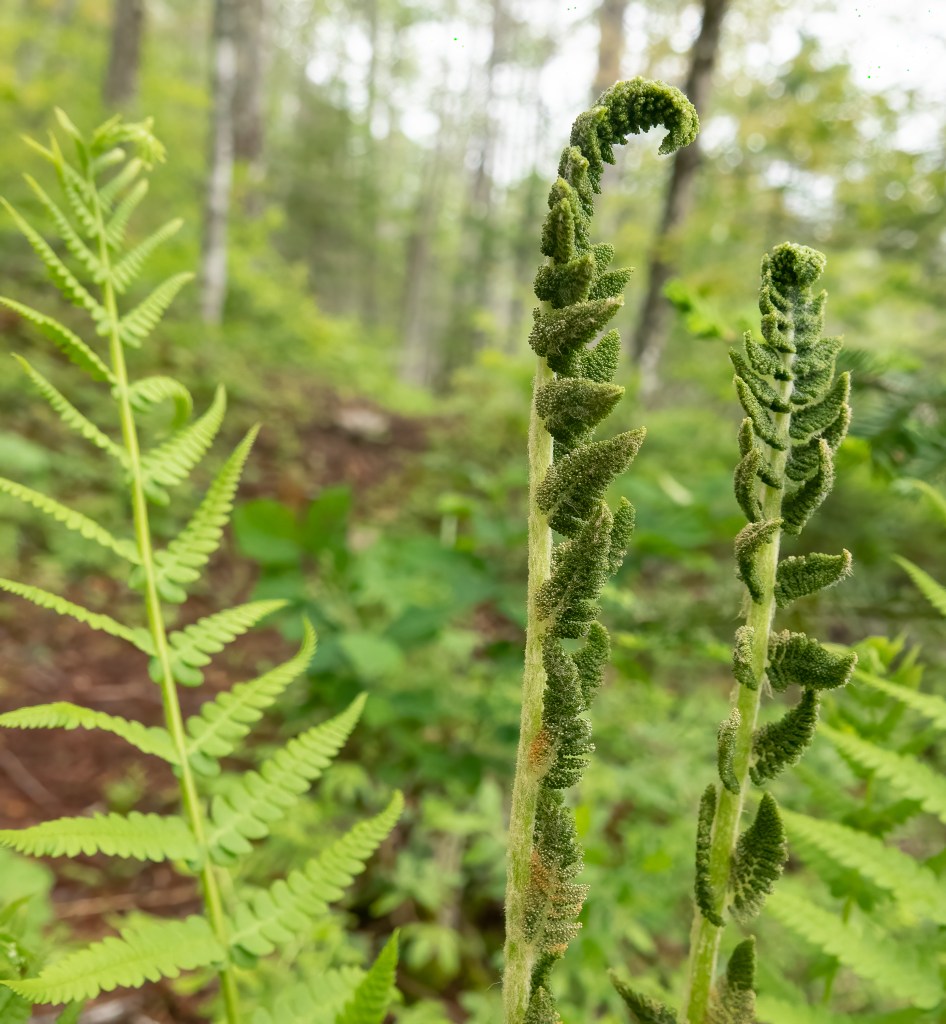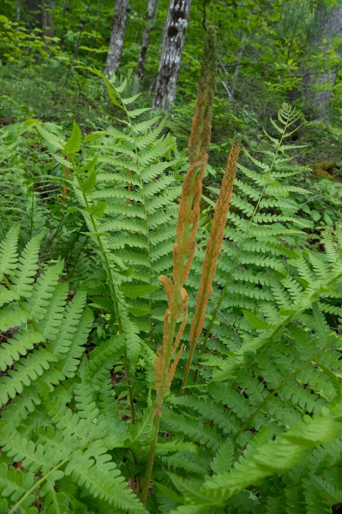 They are Cinnamon Ferns, Osmundastrum cinnamomeum, and are considered a living fossil. Their name comes only from their color: don’t put them in your apple pie. Unlike our more modern plants, they do not produce seeds. They reproduce by spores, like fungi do.