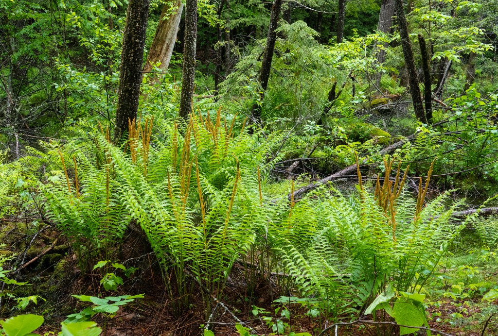 The ferns are six feet tall, and they send up specialized dark green fertile fronds,