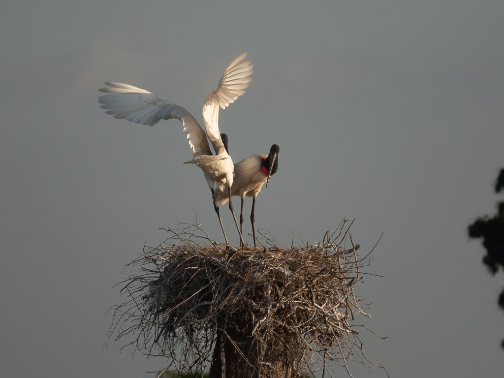 The Jabiru Stork, Jabiru mycteria, is a gigantic bird. Its name means “swollen neck” in Guaraní, and at five feet tall, with a nine foot wingspan, it is the largest flying bird in Central and South America.