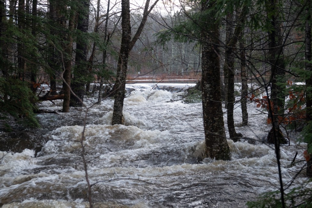 PS The big rain storm may have badly damaged their new lodge. I can’t reach it to look while the stream is so high, but last year’s lodge, a particularly impressive one, but which they had not repaired in preparation for this winter, has suddenly shown signs of fresh occupation. New mud, and new hemlock branches. So they have may have moved back in.