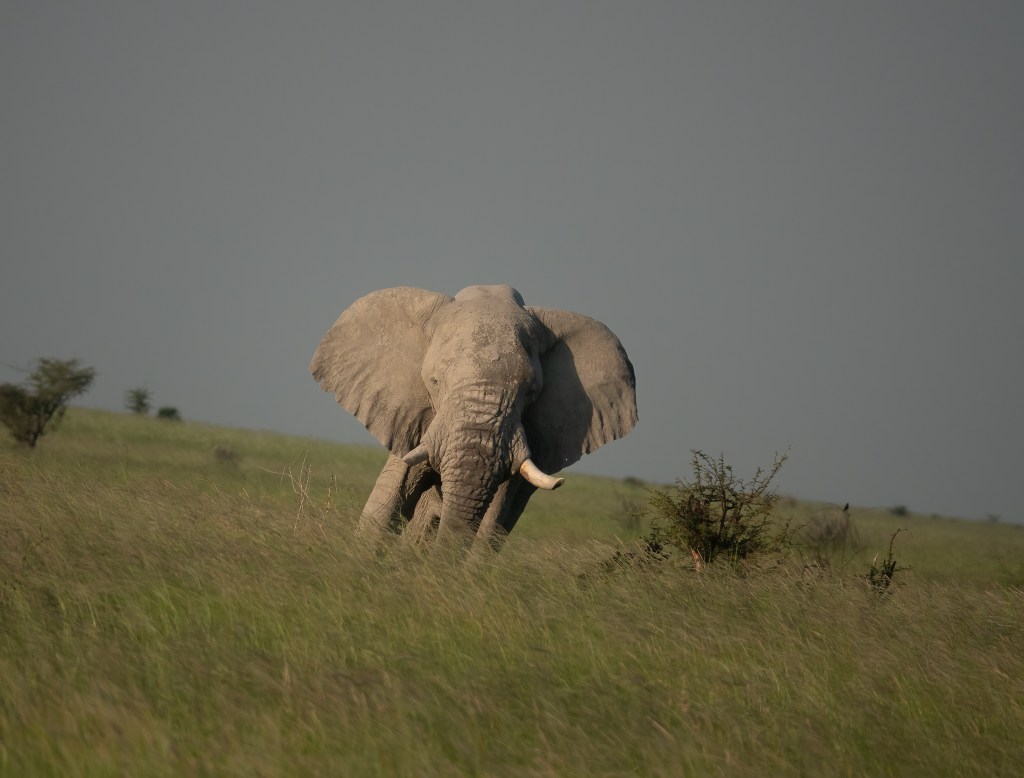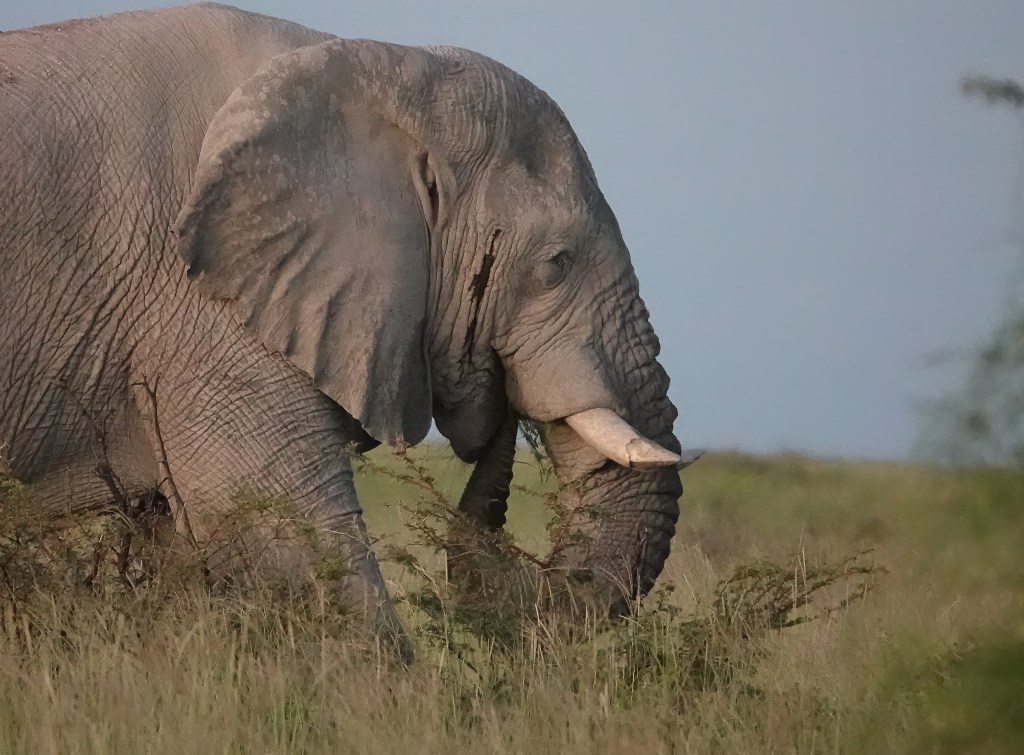 If he were still young and virile, he’d be quite dangerous at this time, rampaging around in search of females. But he is near the end of his life, tusks broken off, too tired for all that fuss.