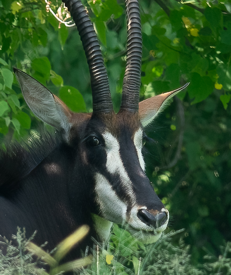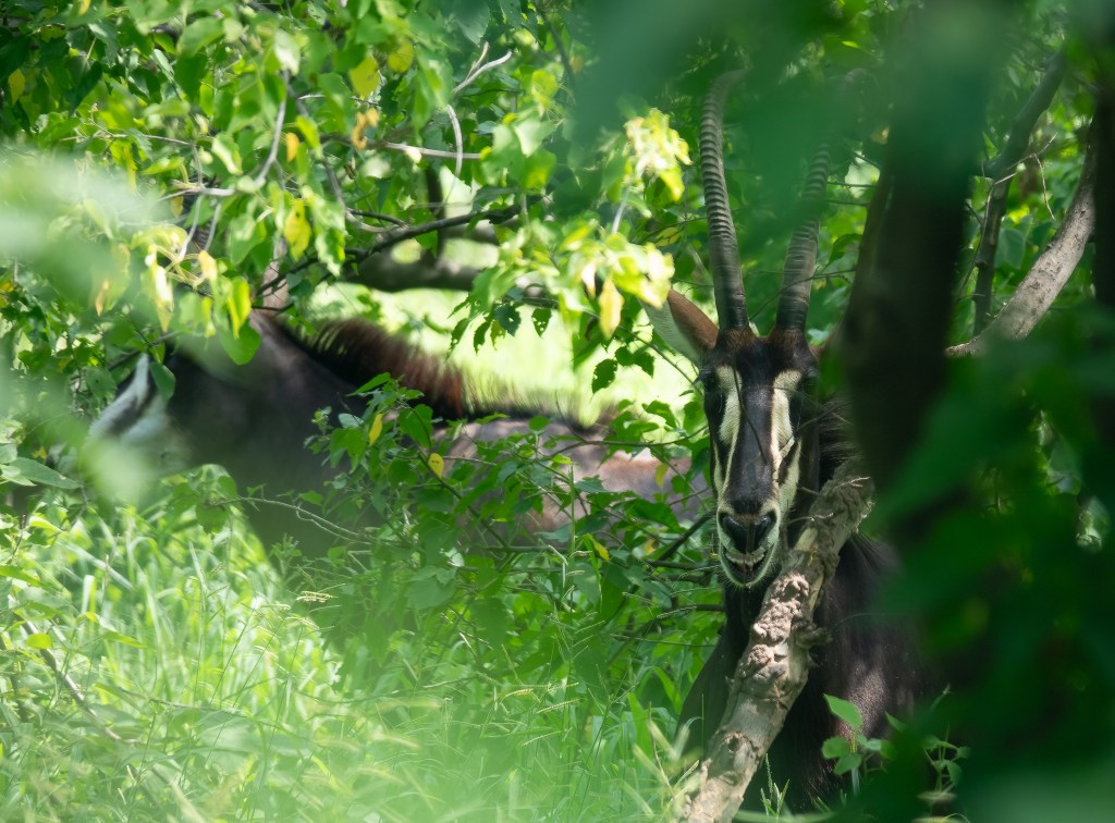 I’ll start with a highlight for me, an animal I had never seen before, a sable antelope, Hippotragus niger. We saw them twice, in the same wooded area. The first time, there were perhaps three or four of them, inside the woodland, peering out at us and hard to see.