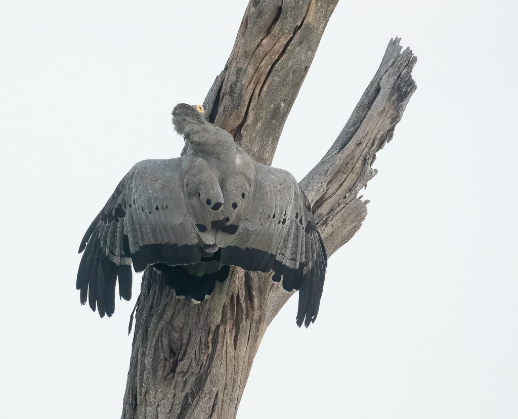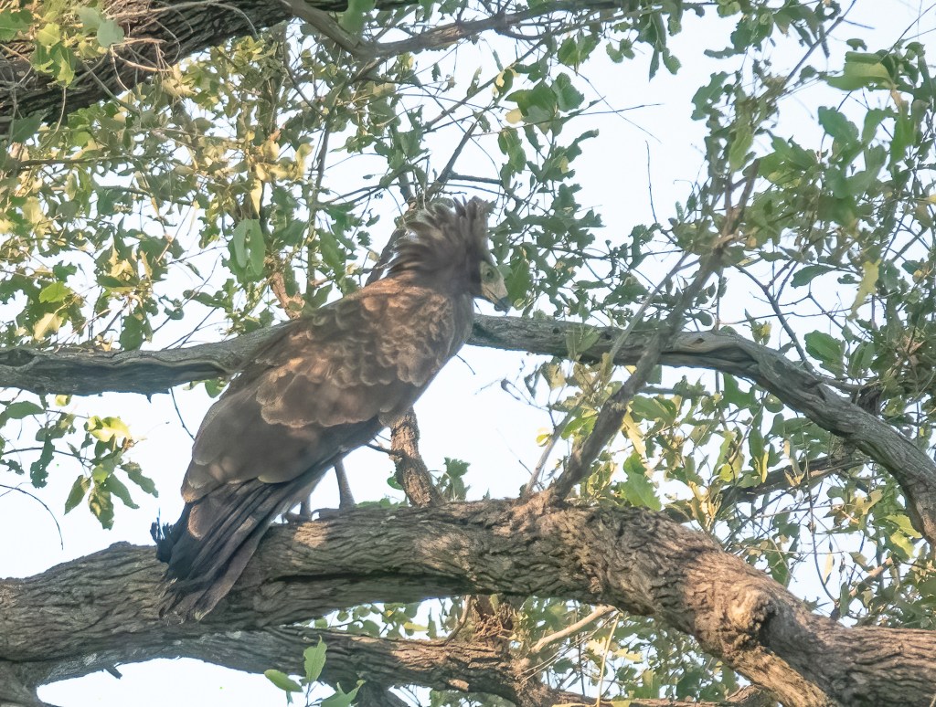 This is a juvenile gymnogene, just hanging out in a tree, crest erect.