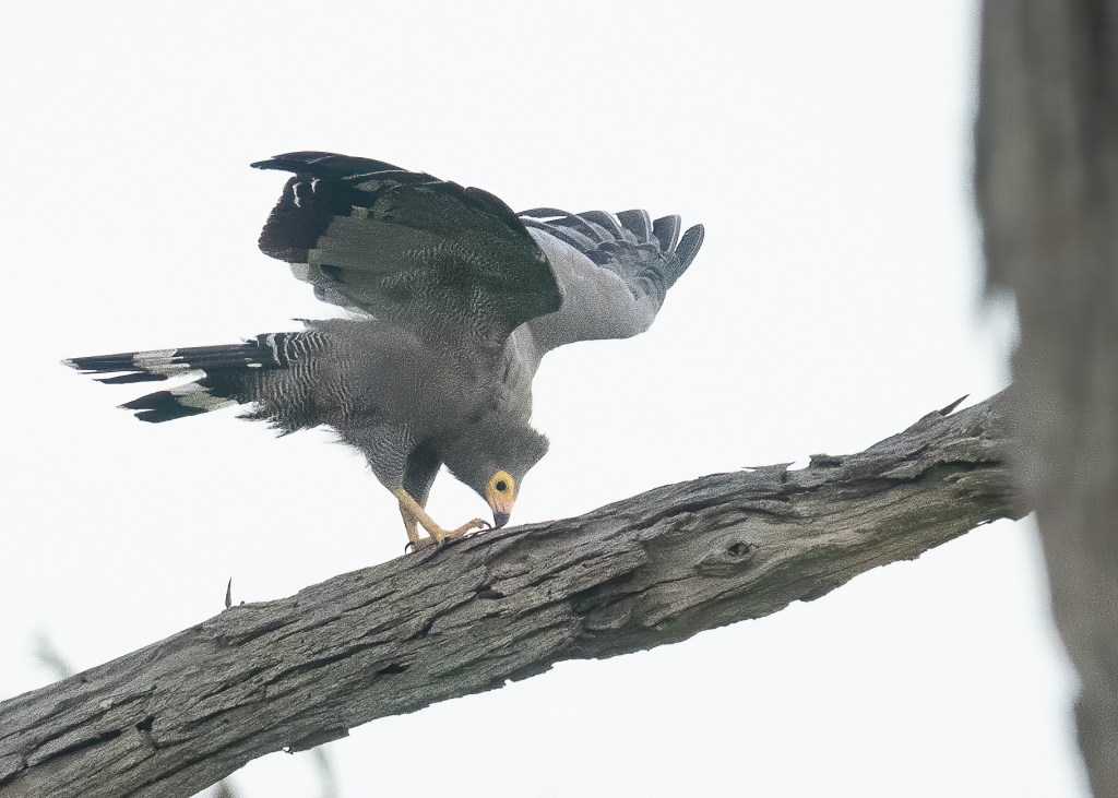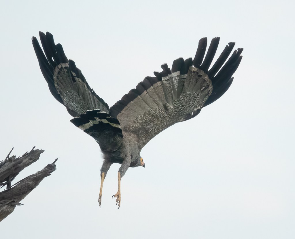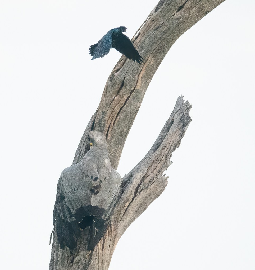 The African Harrier Hawk, or Gymnogene, Polyboroides typus, is a bird I have shown you once before, but this time we saw it in action. It preys on nests, seeking the eggs and baby birds. As a result, if it comes anywhere near a nest the smaller birds mob it.