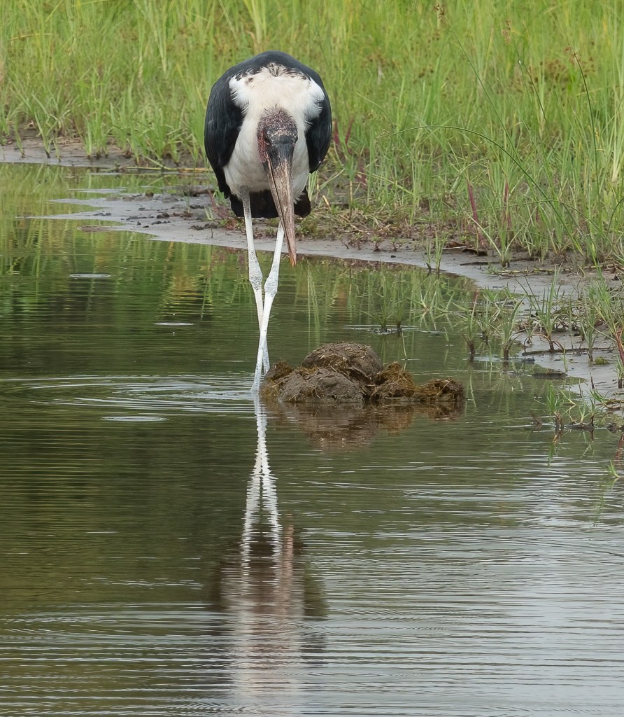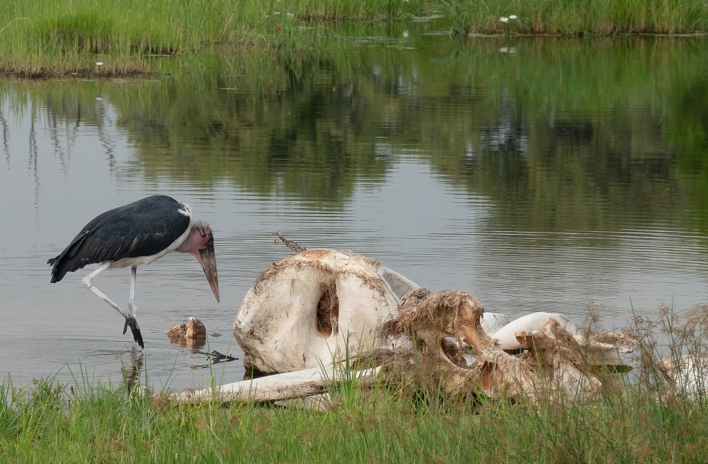 The best known of these is the less appealing Marabou Stork, Leptoptilos crumenifer, a scavenger. It has found the carcass to die for (sorry):