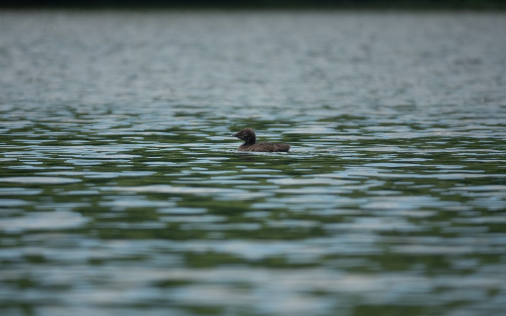 The pair of loons on a pond near me (not my beaver pond) had two chicks about 10 days ago. One did not last long, taken by an eagle or a snapping turtle no doubt. But I photographed this one from about 8 days old.