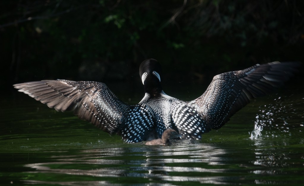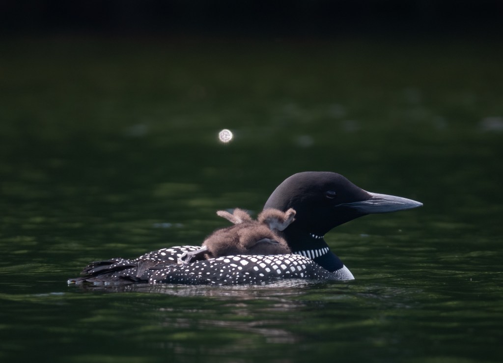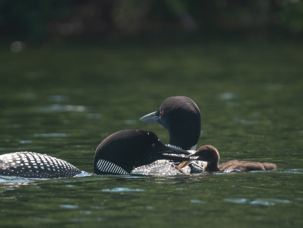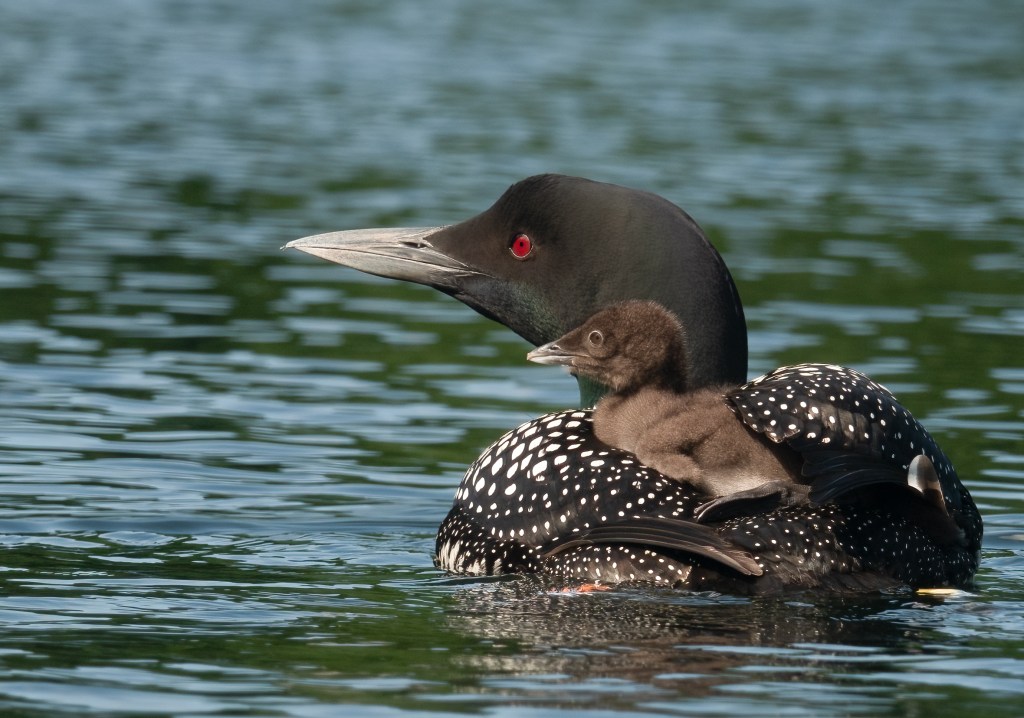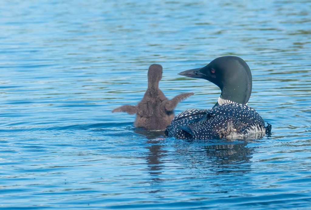 Birds (almost all…Cowbirds not included) are such good parents. Great photos….nice experience to enjoy observing & little loon is an adorable fluffy.