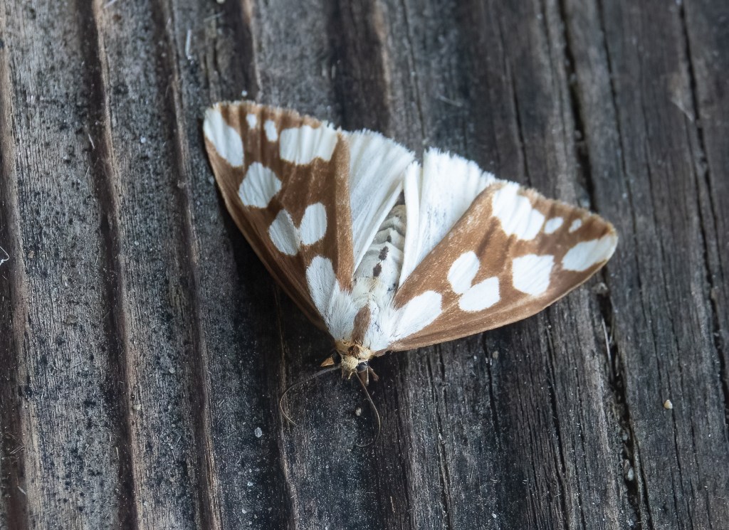 I have found myself interested in the unusual names boasted by some moths. This interest was sparked by finding a striking Confused Haploa Moth, Haploa confusa, on the step of my porch, below the light. It actually is named ‘confused’, and its behavior may have been also. There is no clear consensus as to why it has such an odd name.