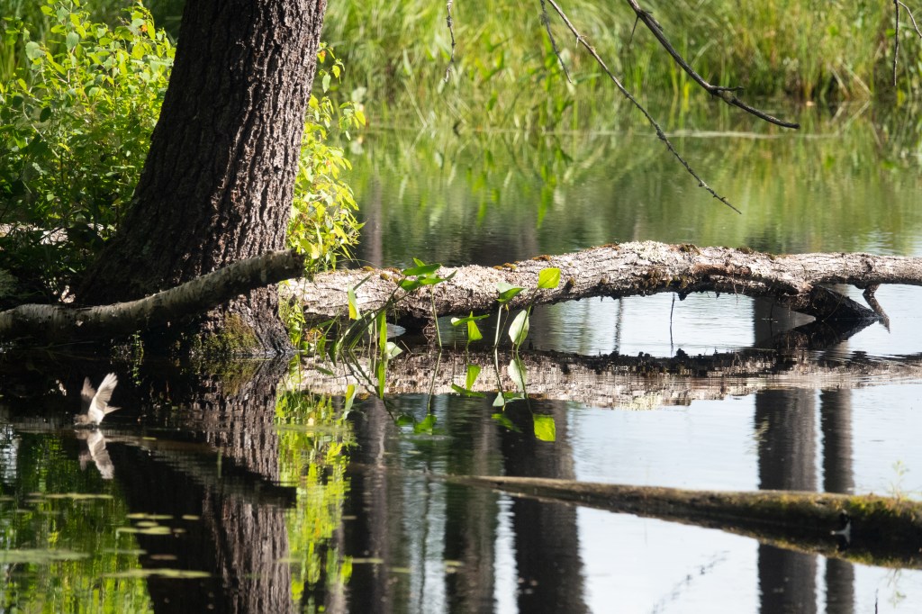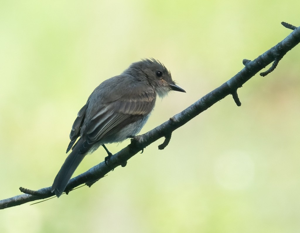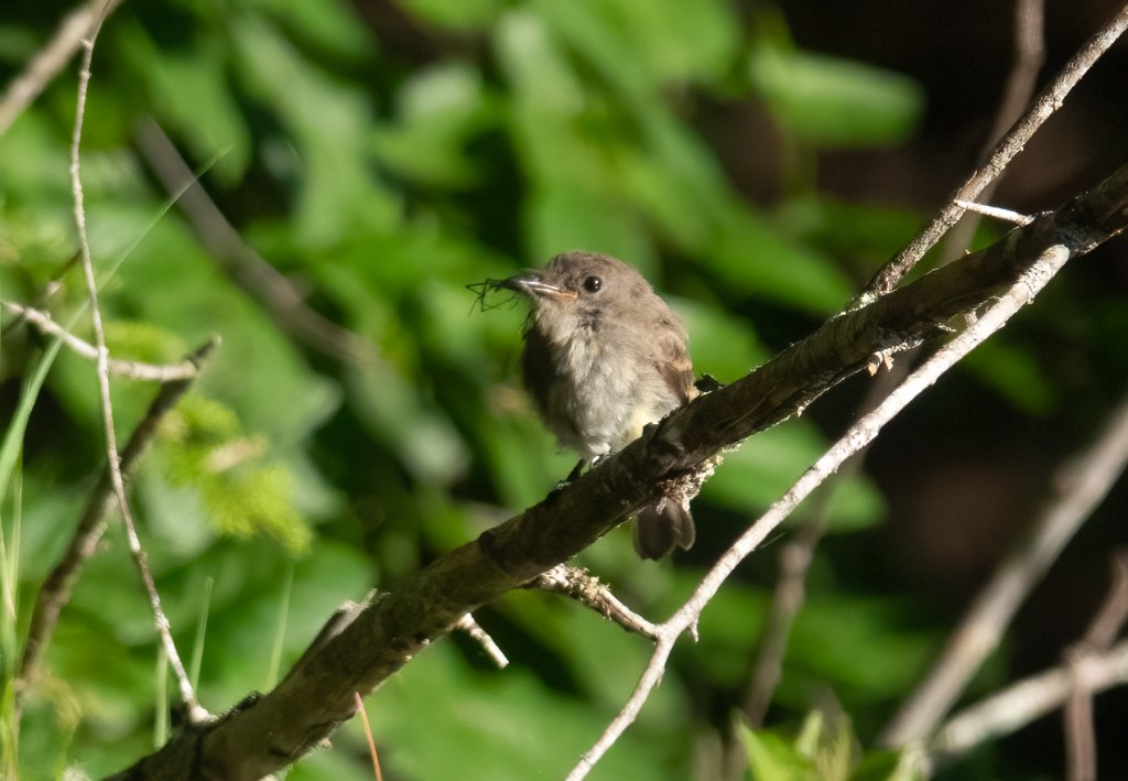 They are insectivores, flycatchers, often catching their prey in mid air. This one has been hanging around my beaver pond, perching in the overhanging trees,