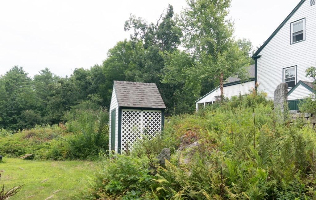 Phoebes often nest under eaves, and these ones nested inside a latticed shed that holds our generator!