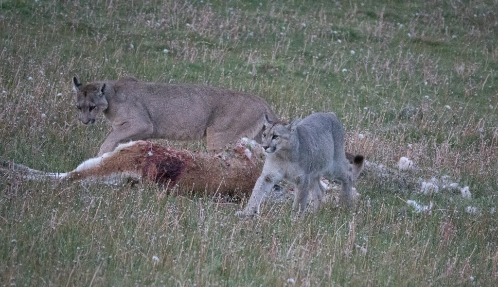 Wonderful that your group was able to observe the Pumas for so long. Clever idea to scrape grass on top. Smart animals!