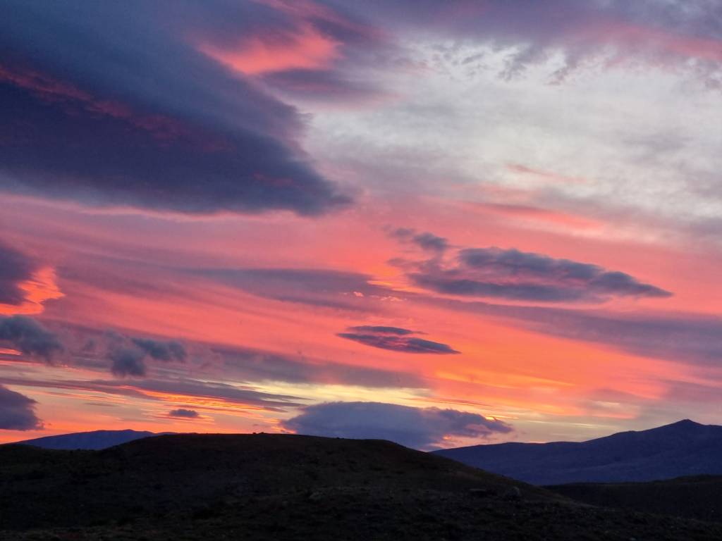 After the previous day, we were slightly dreading another day of howling gales, low temperatures, and not much puma. But at 4am we headed out to Estancia Laguna Amarga again, down the mountain in the dark. The compensation for the early start is a spectacular sunrise, like this one photographed by my friend Kerstin: