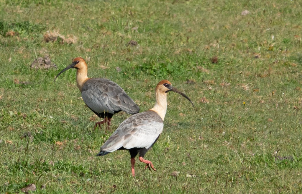 The Black-faced Ibis, Theristicus melanopis, is a handsome bird, which breeds in Southern Chile and Southern Argentina. It is very adaptable, so although open fields are its expected habitat (and outside the breeding seasoning it migrates to the Argentine pampas), it also ventures into quite different territory. Here are a pair poking around in a field for insects, worms, or small vertebrates: