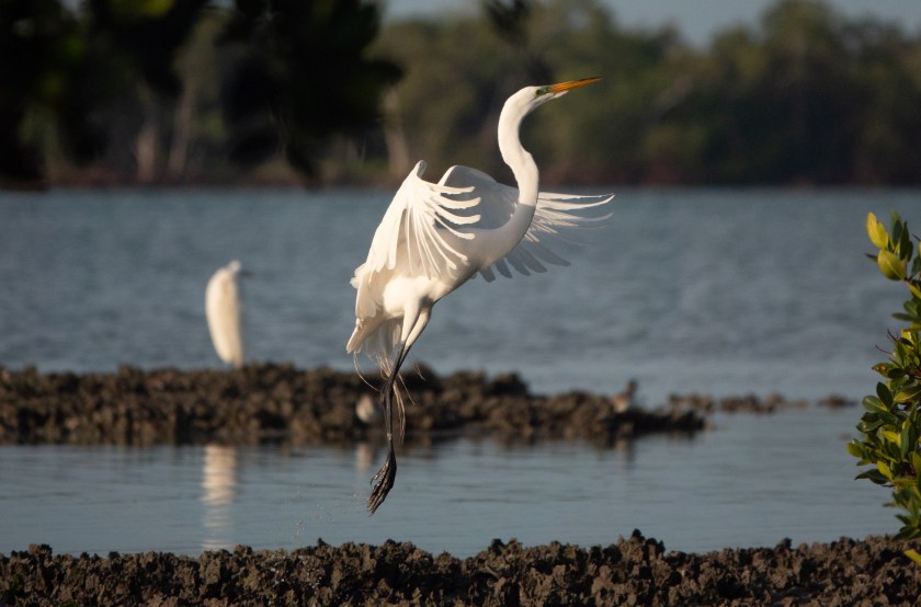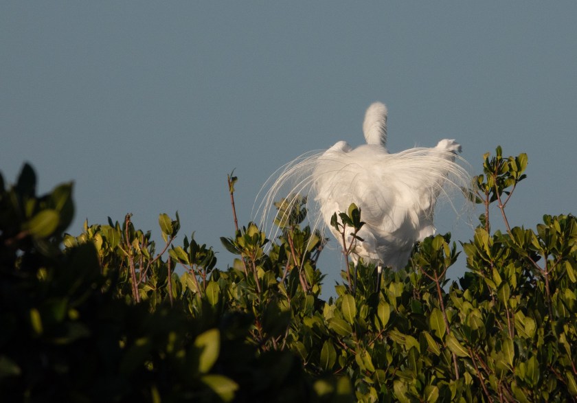 It was, to my delight, a Great White Heron. So, don’t jump to conclusions next time you see a big white bird in south Florida, whether it is elegant: