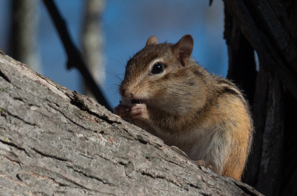 Winter is approaching, time to fill up on food, and get the house in order. A chipmunk was busily downing something delicious, a beetle, I think: