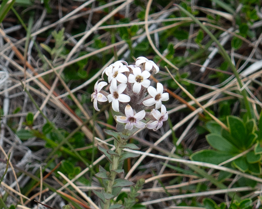 Rather unusually, this 4″ tall plant is pollinated by a bird, the Least Seedsnipe. It eats the conspicuous white lower lip of the flower, which is high in sugars. As it does so, the stigma and anthers of the flower tap its head and back, and that pollen is then transferred to the next flower it visits.