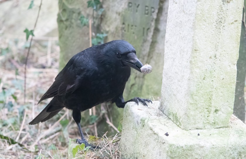 Sometimes very ordinary things catch my attention. The crows in Brompton Cemetery are not rare or exotic, and since they are scavengers we often find them mildly distasteful. But watch closely. This one found a snail: