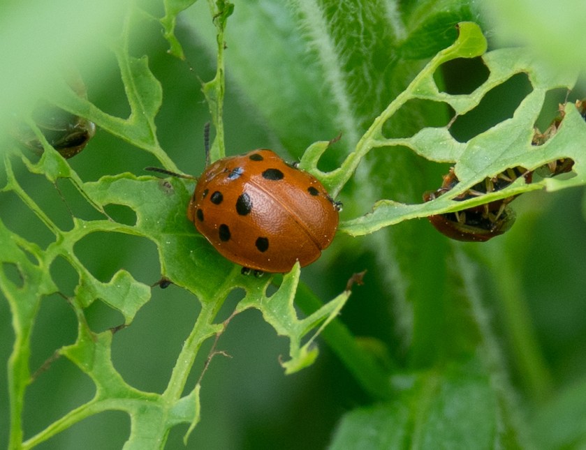 And when I put it back on the leaf, it beat a retreat over the edge of the leaf to safety: