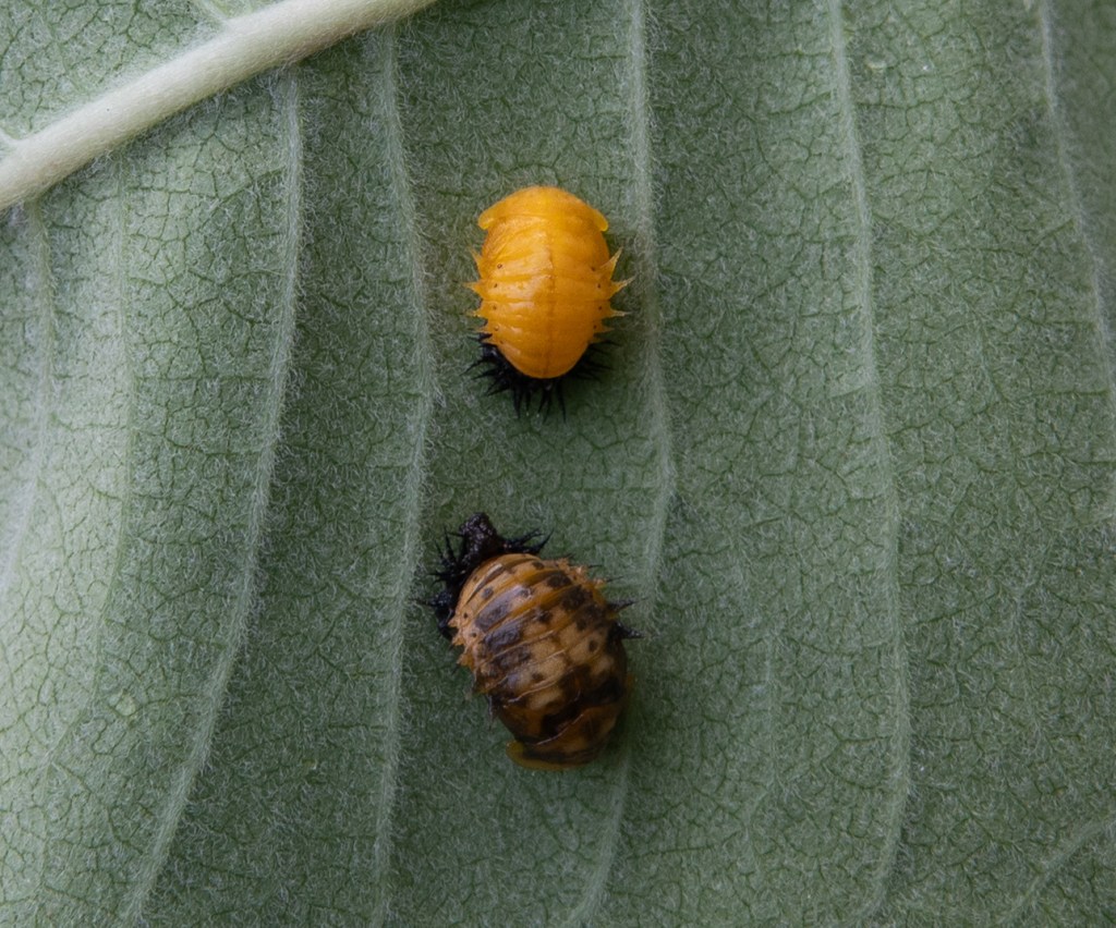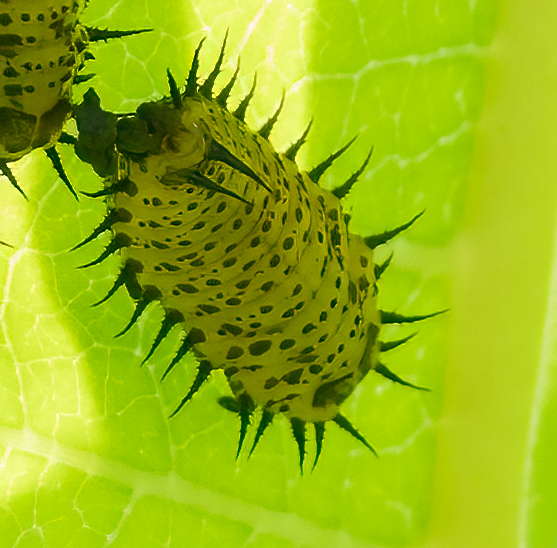 The Missouri Department of Conservation has a graphic description: “The larvae, sometimes called ‘aphid lions’, are insatiable predators of other insects, especially aphids. A lacewing larva grasps the aphid with its grooved, caliper-shaped jaws, often lifts it up in the air, then drinks the fluids in the aphid’s body. A single lacewing larva can eat an aphid a minute, for hours, and not slow down. ” As a result they are sometimes sold as a natural form of aphid control.