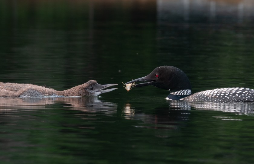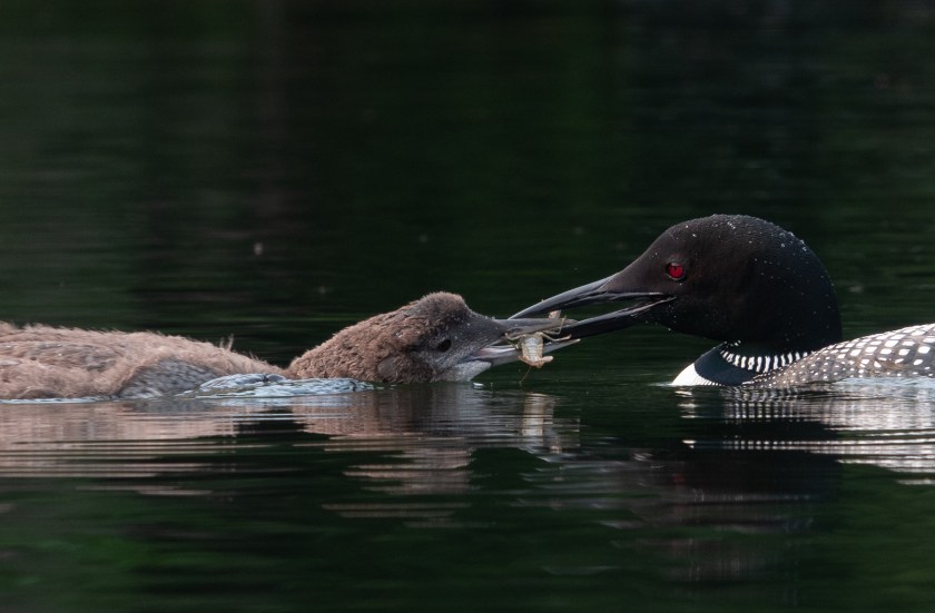 The loon chicks are still being fed, either with (quite large) fish: