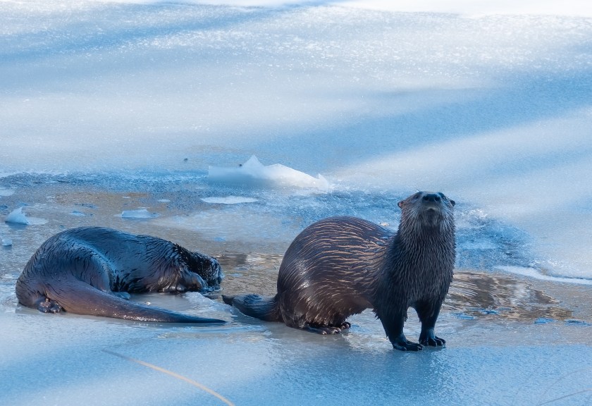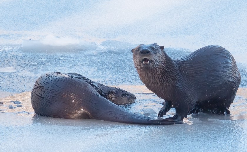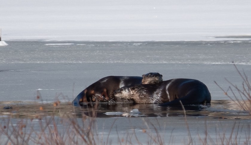 Since I clearly was, they didn’t hang around, only twenty seconds total this time, but then I saw a third one, on the left, further out on the ice near the beaver lodge.